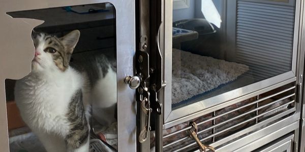 No personal bedding. Please bring your pet's regular food and meds in sealed, solid container (no plastic bags).